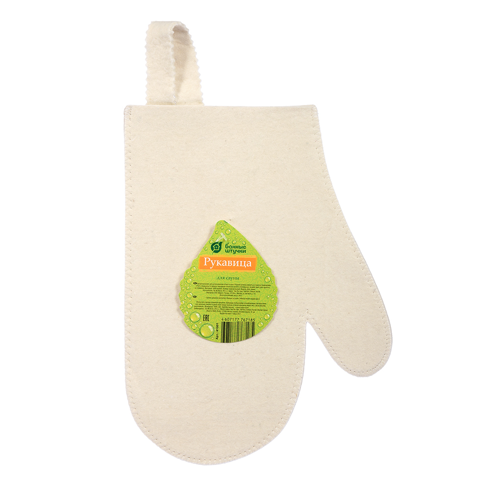 Рукавица нужна для защиты рук от ожогов, которые так часто случаются, когда схватишь горячий ковш за ручку, или веник. Рукавица легко поглощает и испаряет влагу, оставаясь при этом сухой и тёплой. Войлочная рукавица долговечна, прекрасно сохраняет форму, устойчива к стирке и деформации.