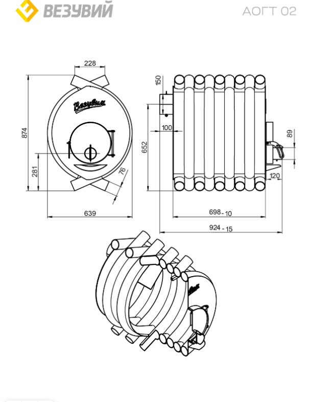 Печь отопительная ВЕЗУВИЙ АОГТ 02 С (со стеклом)